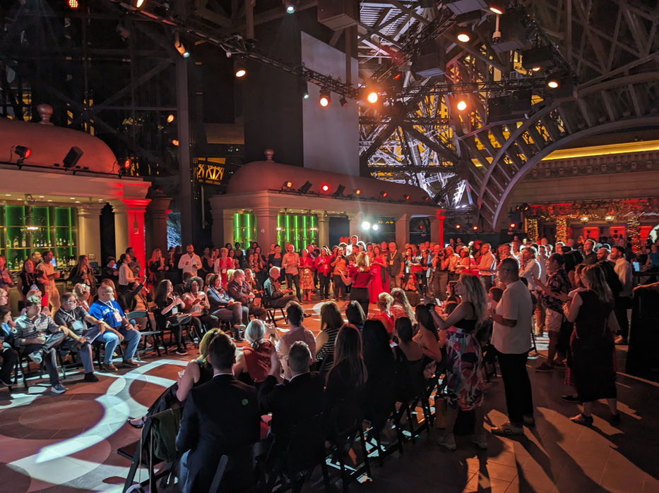 This mesmerizing evening celebrated the richness of indigenous culture through the artistry of fashion, set against the dazzling backdrop of Las Vegas. As the show began, the stage came alive with an elder who introduced the recent Paris Fashion Week artist, Stephanie Crowchild from Eagletail Designs and told of the ancestry of her inspiration. Models, adorned in exquisite garments graced the runway, each ensemble telling a story, blending vibrant colors and intricate beadwork, and organic textiles that echoed the landscapes and traditions of her indigenous heritage. Customized music and a large video wall created a heartbeat of tribal rhythms, complementing the choreographed movements that showcased the versatility and timelessness of the show.